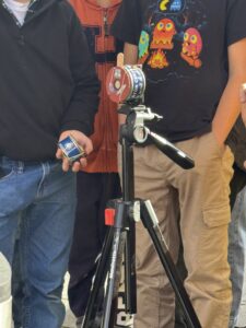 Después, Alberto mostró algunas de sus cámaras estenopeicas, explicando que son aquellas que no tienen lentes y que solo necesitan un objeto opaco con un pequeño agujero por donde entra la luz y un material fotosensible. De esta forma, comentaba, se pueden crear cámaras con diferentes objetos. ¡En nuestro caso, los niños y niñas tomaron sus fotografías en una «lata de atún» que podían decorar a su gusto!