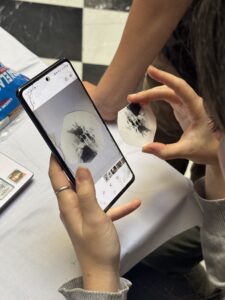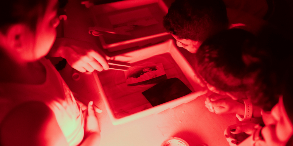 Una vez tomadas las fotografías, debían volver a tapar las cámaras para que no se desvelaran por los cambios de luz. Después, pasaron uno por uno por la cabina para poder sacar el material fotosensible y proceder al rebelado de la imagen. Finalmente se fotografiaron todos los materiales en orden para poder crear el clip y mostrarlo en el proyector.