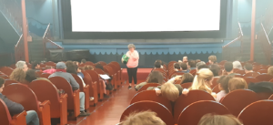 Aproximadamente sobre las 11h de la mañana empezaron a llegar las familias y a las 11.30h dio comienzo la proyección, después de explicar a los asistentes qué es la Filmoteca Española y en qué consiste el proyecto Filmoteca en Familia.