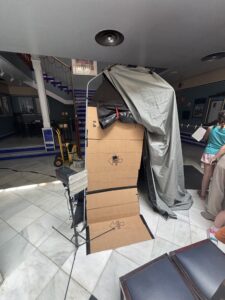 El día comenzó muy pronto para Alberto y su ayudante Ana ya que tenían que construir una gigante cámara oscura casera para que hiciera las funciones de cámara fotográfica y laboratorio de revelado.