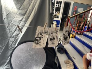 Se realizaron varias fotos y en cada una de ellas se iban cambiando los protagonistas de cada oficio, de esta forma todos pudieron ver cómo se realizaba una fotografía desde dentro de la Big Cam y cómo revelar dicha foto. Estas fotos se secaban y colgaban para que posteriormente se las pudieran llevar los protagonistas de las mismas.