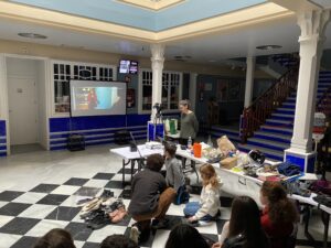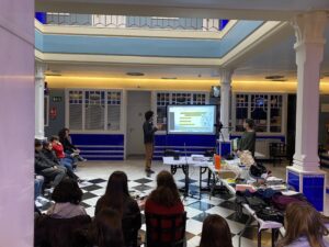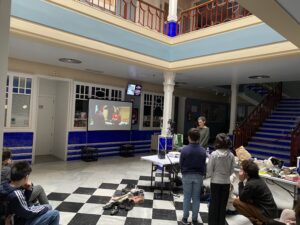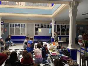 El domingo 14 de enero de 2024 reanudamos, tras el parón navideño, las actividades de Filmoteca en Familia en el Cine Doré. En este caso consistió en la realización del taller de Foley impartido por todo un especialista Jhonnatan Freites y su ayudante Belén. La actividad tenía su inicio a las 11:00h y el horario se cumplió con una precisión de reloj suizo ya que los asistentes estaban esperando a que se abrieran las puertas para entrar.