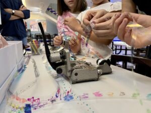 El domingo 15 de octubre de 2023 tuvo lugar en las instalaciones del Cine Doré la actividad de Filmoteca en Familia titulada “Tocando el cine”. Comenzó a las 11h y fue impartida por Deneb Martos* junto con Andrea Sánchez, todo un orgullo contar con estas dos especialistas en cine sin cámara con mucha experiencia docente y el desarrollo de otros muchos talleres.